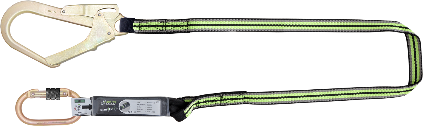 Beschreibung: Energieabsorbierendes Gurtband mit Verbindungselementen, Länge: 1,8m, Breite: 30 mm Material: Gurtband: Polyester, Apsorber: Polyamid und Polyester, Verbindungselemente: Stahl Verbindungselemente: FA50 207 55 und FA50 101 17 Artikelgewicht: 0,87 kg Norm: EN355:2002