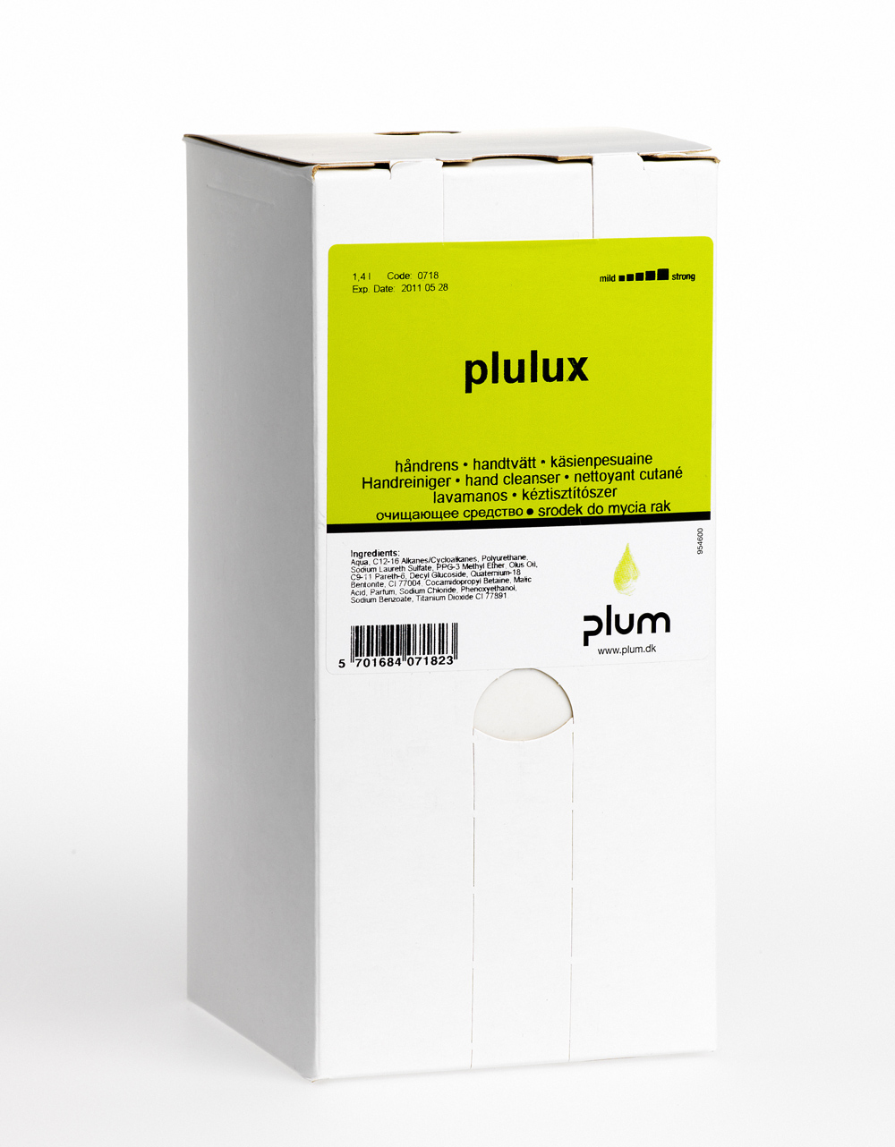 Artikel: Paste zur Reinigung der Hände Plulux Verpackung: Beutel im Karton 1,4 L Beschreibung: Paste zur Reinigung der Hände – entfernt Öl, Russ, Gummi und Metallstaub Originalverpackung: 1/8