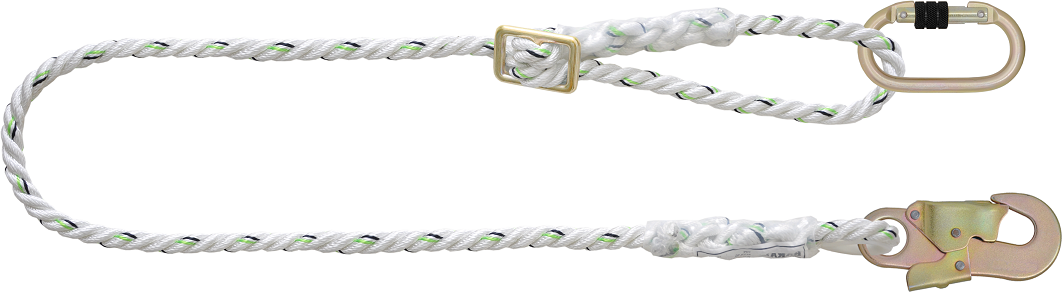 Beschreibung: Kratos Safety Arbeitspositionierungs-Drehseil mit Ringversteller Länge: max. 2 m Durchmesser: 14 mm Seil: Polyamid Konnektoren: Stahl-Schraubkarabiner FA50 101 17 und Stahl-Karabinerhaken FA50 202 17 Artikelgewicht: 0,69 kg Norm: EN358:2000